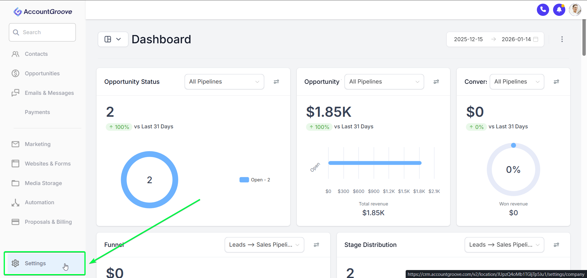 Tip: AccountGroove’s calendar works like Calendly, TidyCal, or Scheduler and is fully integrated into the platform to give you more insight into your bookings. You can set it up in a future step.