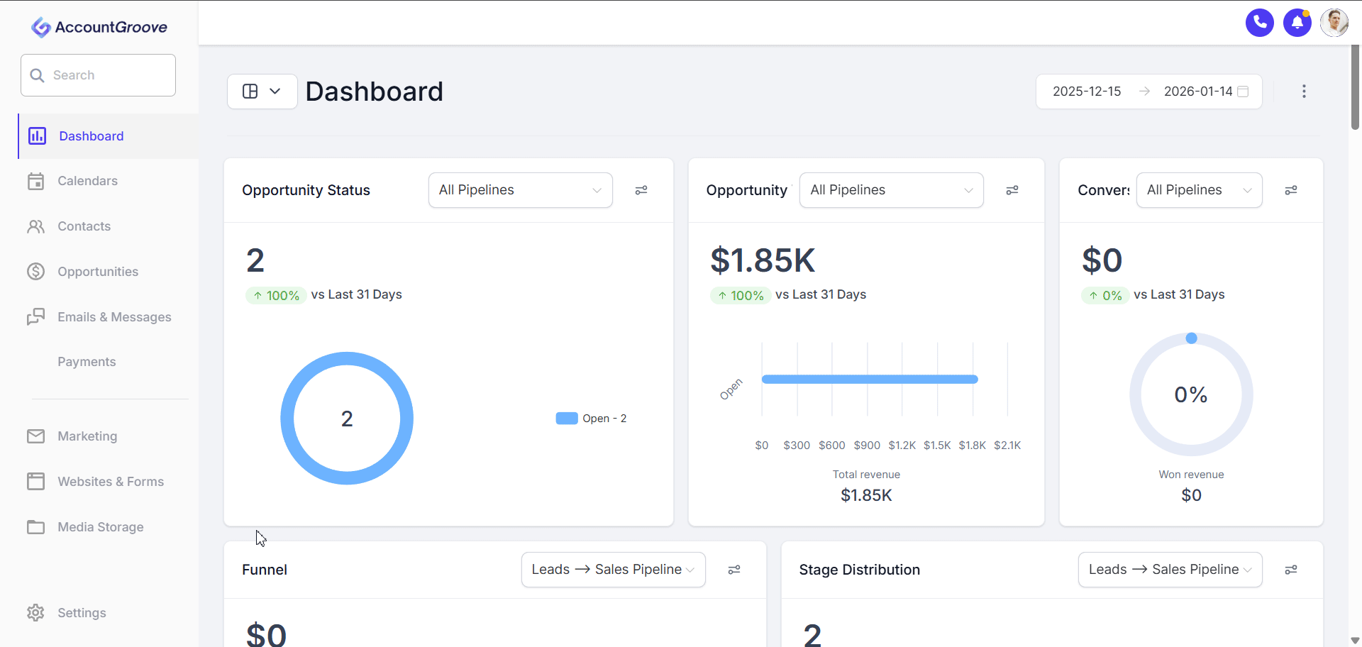 - Which areas of AccountGroove CRM they can access (marketing tools, settings, campaigns, etc.)