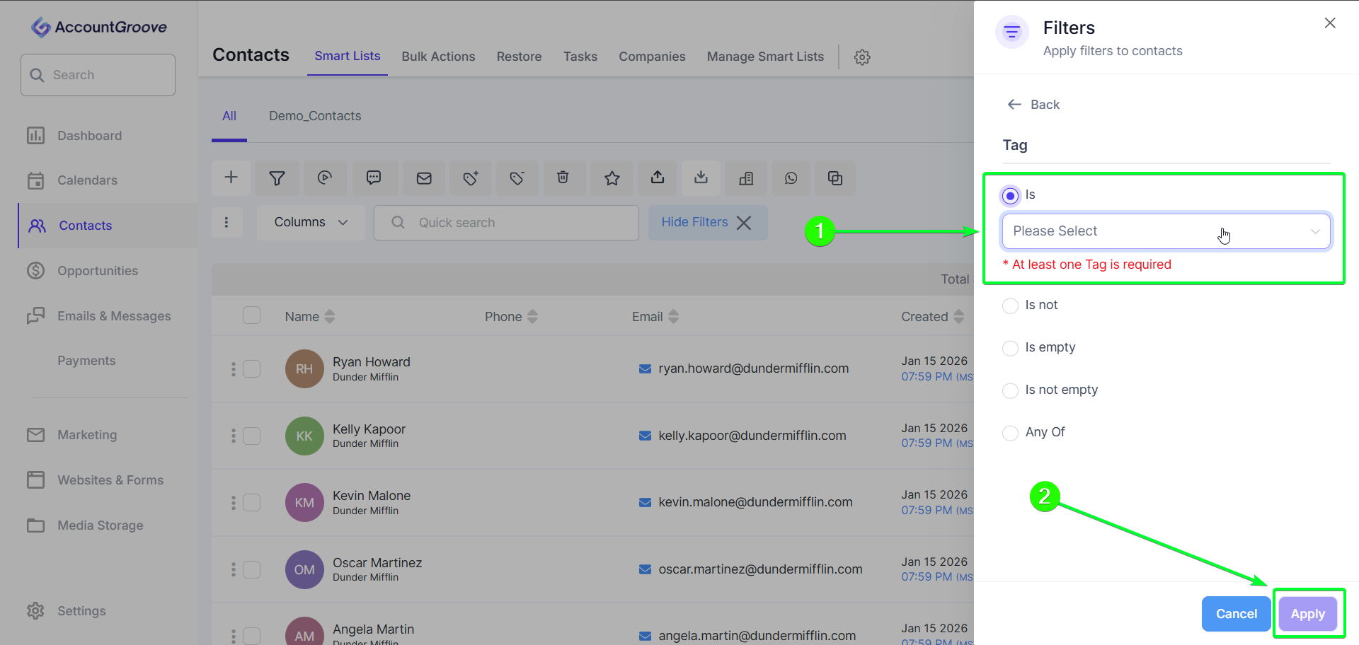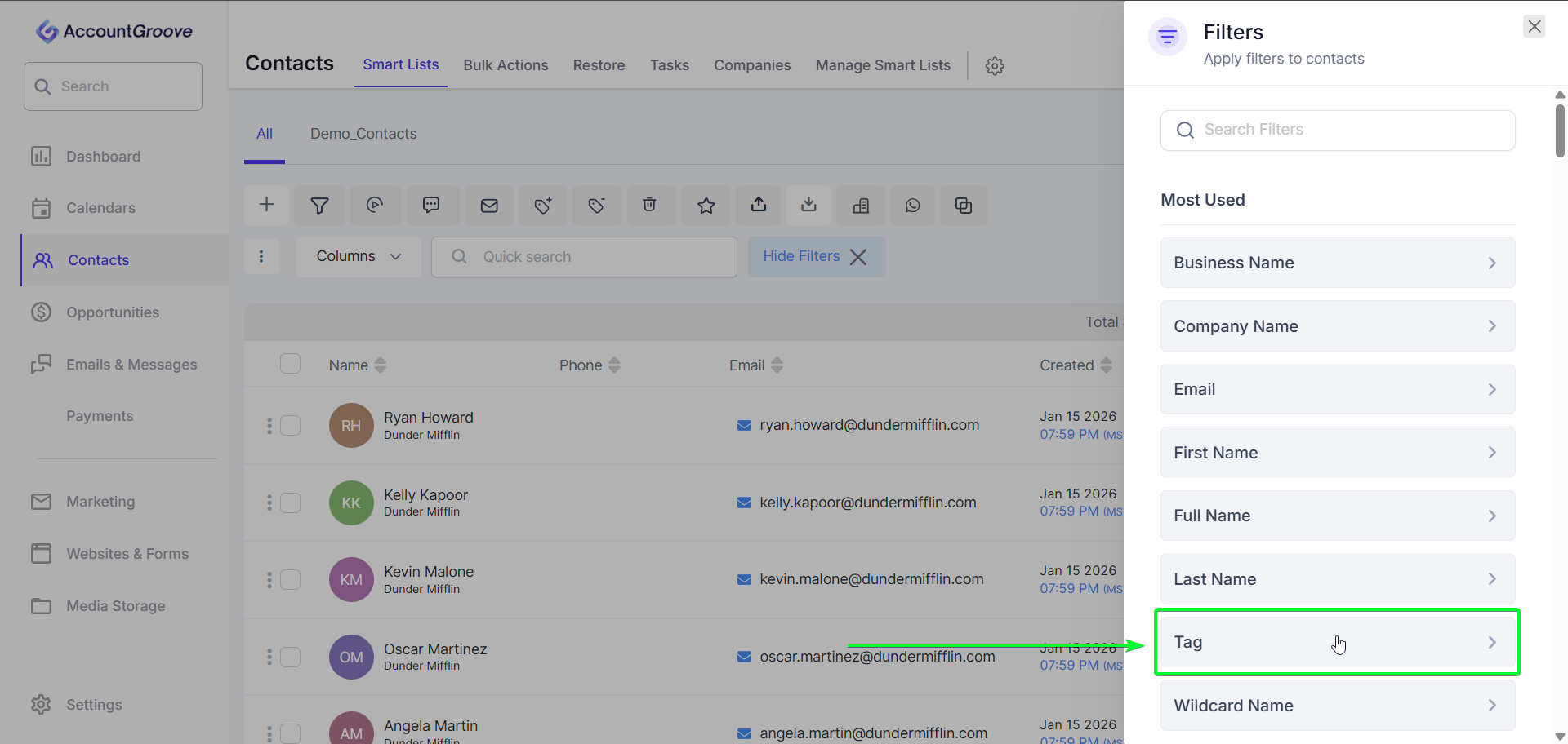 Smart Lists allow you to dynamically group contacts based on rules like tags. These lists automatically update as contacts meet or no longer meet your criteria, making them ideal for email campaigns, automations, and reporting.