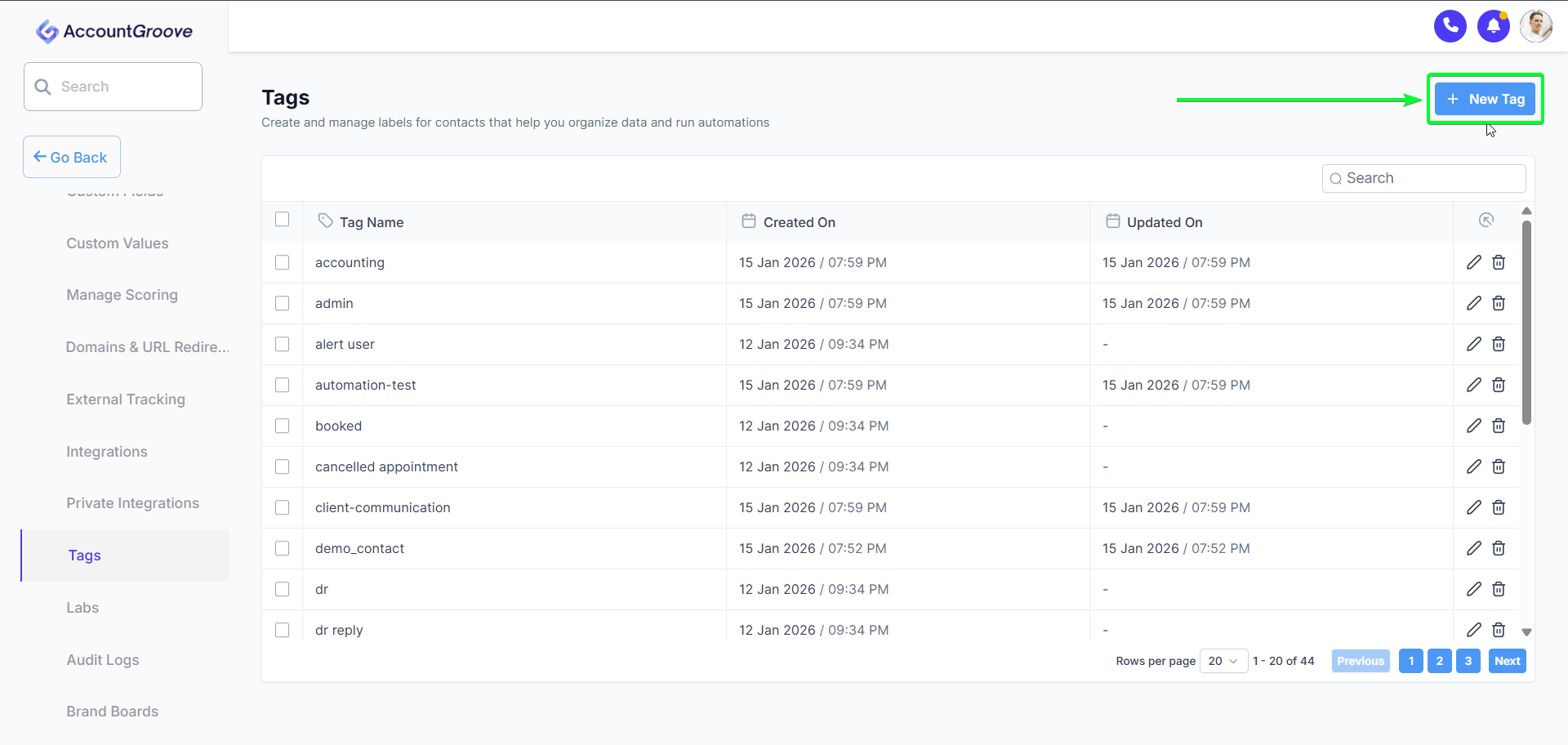 Tags are the foundation of Smart Lists. Before creating a list, make sure the tags you need exist.